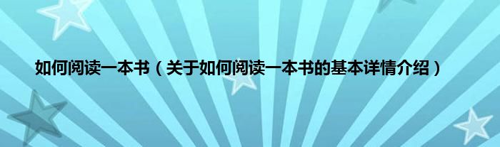 本文关于如何阅读一本书的基本详情介绍就讲解完毕,希望对大家有所帮助。