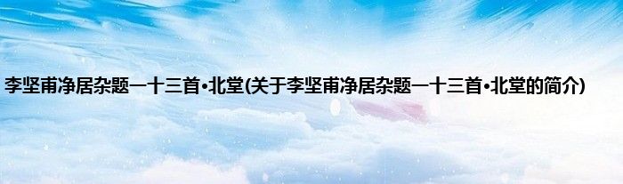 本文关于李坚甫净居杂题一十三首·北堂的简介就讲解完毕,希望对大家有所帮助。