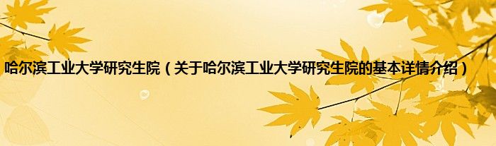 本文关于哈尔滨工业大学研究生院的基本详情介绍就讲解完毕,希望对大家有所帮助。