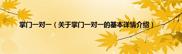 本文关于掌门一对一的基本详情介绍就讲解完毕,希望对大家有所帮助。