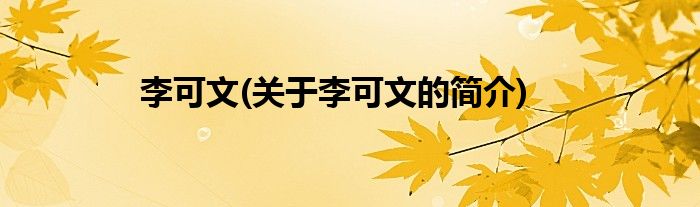 本文关于李可文的简介就讲解完毕,希望对大家有所帮助。