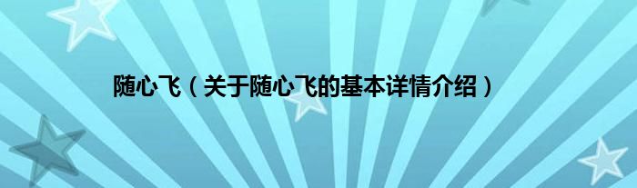 本文关于随心飞的基本详情介绍就讲解完毕,希望对大家有所帮助。