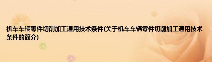 大家好,机车车辆零件切削加工通用技术条件,关于机车车辆零件切削加工通用技术条件的简介很多人还不知道,现在让我们一起来看看吧!