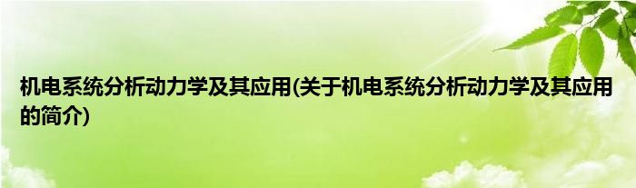 本文关于机电系统分析动力学及其应用的简介就讲解完毕,希望对大家有所帮助。