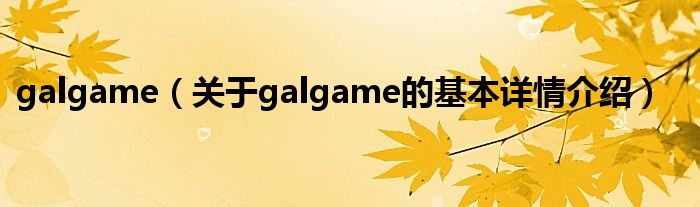 本文关于galgame的基本详情介绍就讲解完毕,希望对大家有所帮助。
