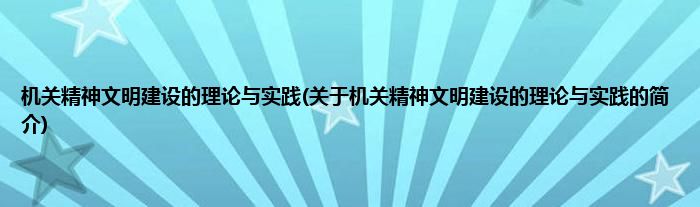 本文关于机关精神文明建设的理论与实践的简介就讲解完毕,希望对大家有所帮助。