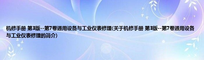 大家好,机修手册 第3版--第7卷通用设备与工业仪表修理,关于机修手册 第3版--第7卷通用设备与工业仪表修理的简介很多人还不知道,现在让我们一起来看看吧!