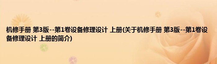 1、 《机修手册(第3版)--第1卷设备修理设计(上册)》是1993年机械工业出版社出版的图书。