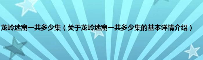 本文关于龙岭迷窟一共多少集的基本详情介绍就讲解完毕,希望对大家有所帮助。