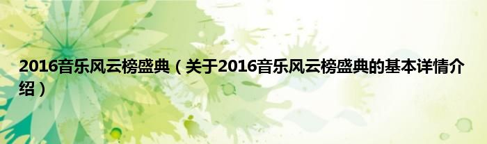 本文关于2016音乐风云榜盛典的基本详情介绍就讲解完毕,希望对大家有所帮助。