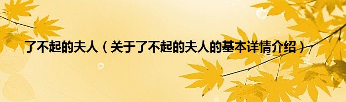 本文关于了不起的夫人的基本详情介绍就讲解完毕,希望对大家有所帮助。