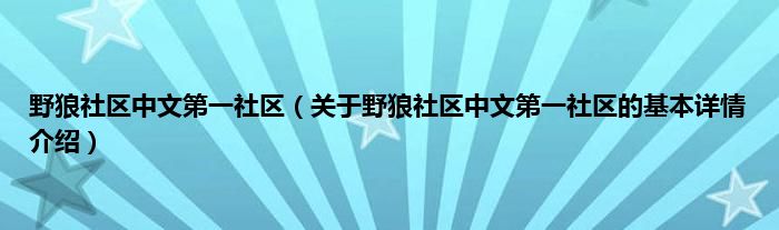 本文关于野狼社区中文第一社区的基本详情介绍就讲解完毕,希望对大家有所帮助。