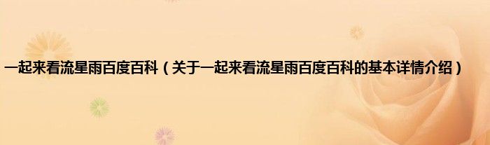本文关于一起来看流星雨百度百科的基本详情介绍就讲解完毕,希望对大家有所帮助。