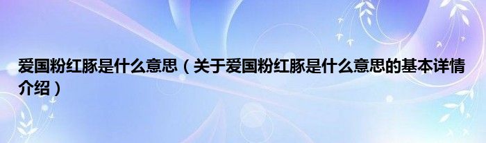 本文关于爱国粉红豚是什么意思的基本详情介绍就讲解完毕,希望对大家有所帮助。