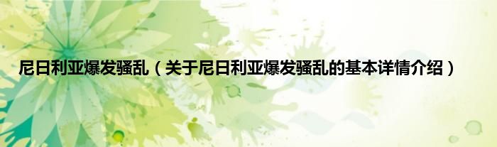 本文关于尼日利亚爆发骚乱的基本详情介绍就讲解完毕,希望对大家有所帮助。