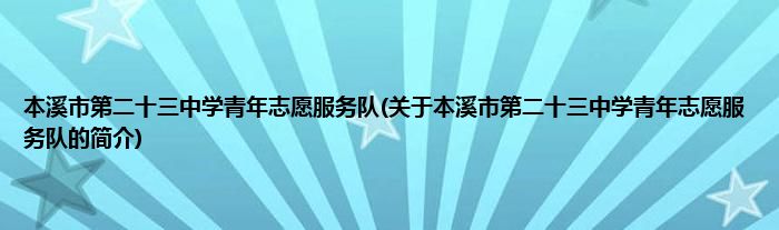 大家好,本溪市第二十三中学青年志愿服务队,关于本溪市第二十三中学青年志愿服务队的简介很多人还不知道,现在让我们一起来看看吧!