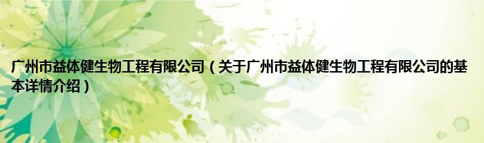 本文关于广州市益体健生物工程有限公司的基本详情介绍就讲解完毕,希望对大家有所帮助。