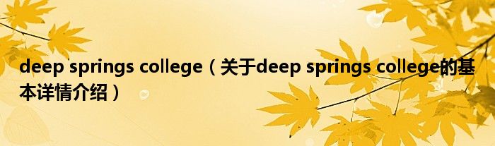 本文关于deep springs college的基本详情介绍就讲解完毕,希望对大家有所帮助。