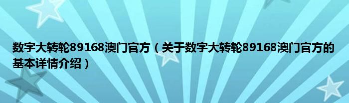 本文关于数字大转轮89168澳门官方的基本详情介绍就讲解完毕,希望对大家有所帮助。