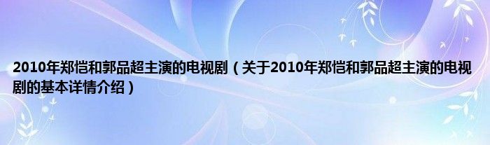 本文关于2010年郑恺和郭品超主演的电视剧的基本详情介绍就讲解完毕,希望对大家有所帮助。
