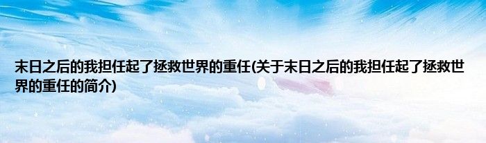 大家好,末日之后的我担任起了拯救世界的重任,关于末日之后的我担任起了拯救世界的重任的简介很多人还不知道,现在让我们一起来看看吧!