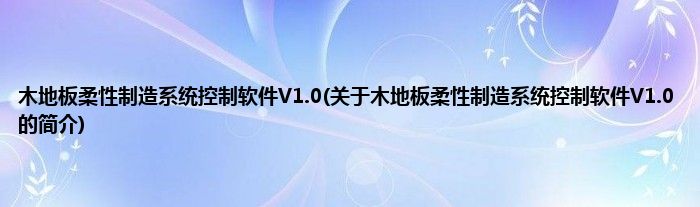 木地板柔性制造系统控制软件V1.0(关于木地板柔性制造系统控制软件V1.0的简介)