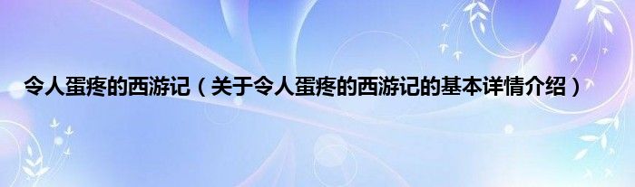 本文关于令人蛋疼的西游记的基本详情介绍就讲解完毕,希望对大家有所帮助。