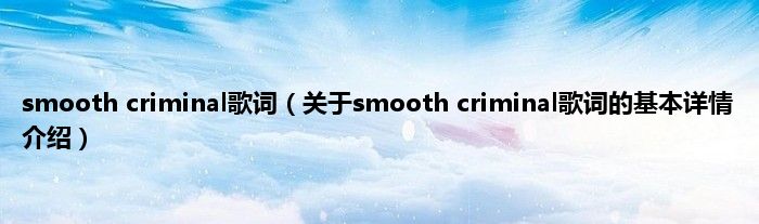 本文关于smooth criminal歌词的基本详情介绍就讲解完毕,希望对大家有所帮助。