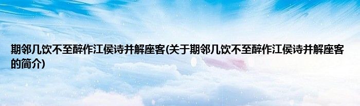 大家好,期邻几饮不至醉作江侯诗并解座客,关于期邻几饮不至醉作江侯诗并解座客的简介很多人还不知道,现在让我们一起来看看吧!