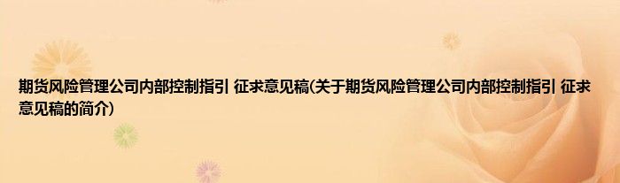 本文关于期货风险管理公司内部控制指引 征求意见稿的简介就讲解完毕,希望对大家有所帮助。