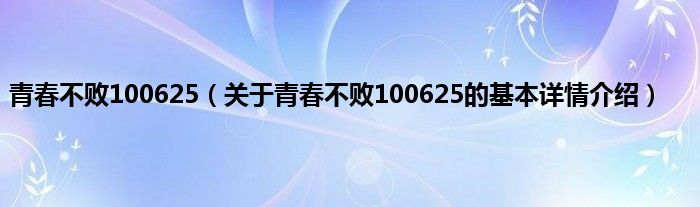 本文关于青春不败100625的基本详情介绍就讲解完毕,希望对大家有所帮助。