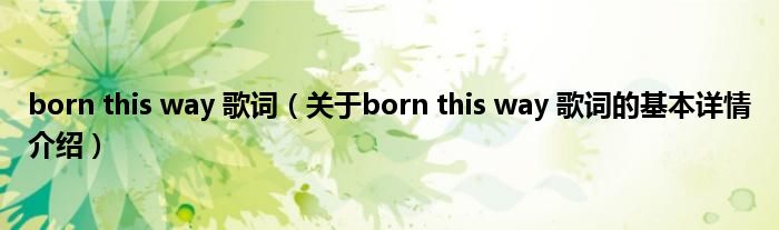 本文关于born this way 歌词的基本详情介绍就讲解完毕,希望对大家有所帮助。