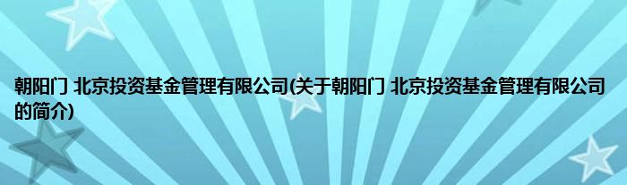 大家好,朝阳门 北京投资基金管理有限公司,关于朝阳门 北京投资基金管理有限公司的简介很多人还不知道,现在让我们一起来看看吧!