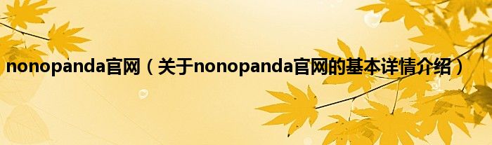 nonopanda官网(关于nonopanda官网的基本详情介绍)