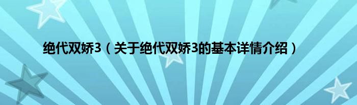 本文关于绝代双娇3的基本详情介绍就讲解完毕,希望对大家有所帮助。