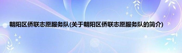 1、 朝阳区侨联志愿服务队是由北京市侨联志愿服务总队领导下的志愿团体。