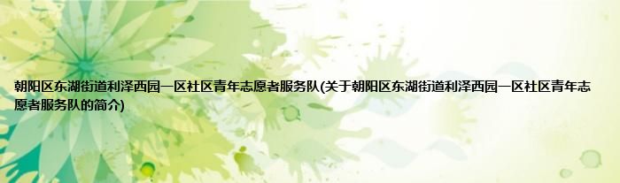 1、 朝阳区东湖街道利泽西园一区社区青年志愿者服务队是由朝阳区东湖街道青年志愿者服务队领导下的志愿团体。