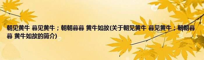 本文关于朝见黄牛,暮见黄牛;朝朝暮暮,黄牛如故的简介就讲解完毕,希望对大家有所帮助。