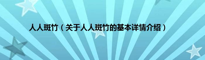 本文关于人人斑竹的基本详情介绍就讲解完毕,希望对大家有所帮助。