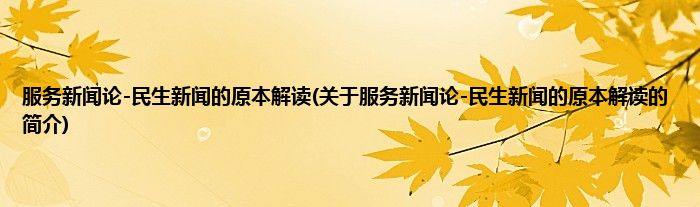 大家好,服务新闻论-民生新闻的原本解读,关于服务新闻论-民生新闻的原本解读的简介很多人还不知道,现在让我们一起来看看吧!