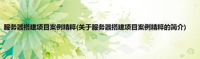 本文关于服务器搭建项目案例精粹的简介就讲解完毕,希望对大家有所帮助。
