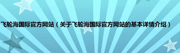 本文关于飞轮海国际官方网站的基本详情介绍就讲解完毕,希望对大家有所帮助。