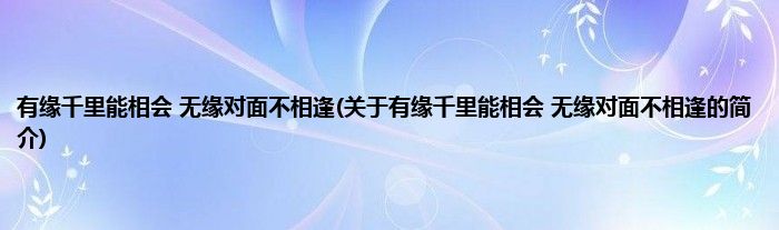 本文关于有缘千里能相会,无缘对面不相逢的简介就讲解完毕,希望对大家有所帮助。