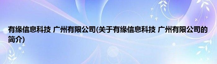 大家好,有缘信息科技 广州有限公司,关于有缘信息科技 广州有限公司的简介很多人还不知道,现在让我们一起来看看吧!