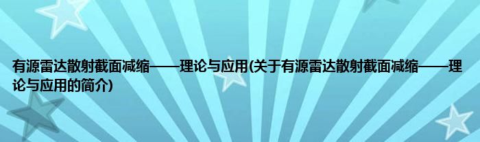 本文关于有源雷达散射截面减缩——理论与应用的简介就讲解完毕,希望对大家有所帮助。