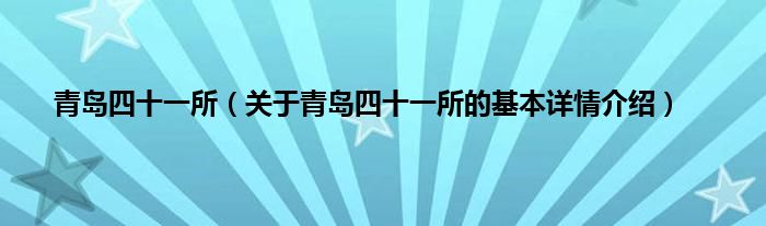本文关于青岛四十一所的基本详情介绍就讲解完毕,希望对大家有所帮助。