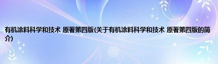 本文关于有机涂料科学和技术 原著第四版的简介就讲解完毕,希望对大家有所帮助。