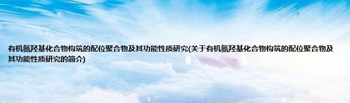 大家好,有机氮羟基化合物构筑的配位聚合物及其功能性质研究,关于有机氮羟基化合物构筑的配位聚合物及其功能性质研究的简介很多人还不知道,现在让我们一起来看看吧!