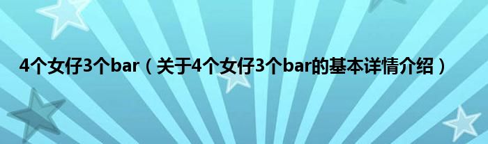 本文关于4个女仔3个bar的基本详情介绍就讲解完毕,希望对大家有所帮助。