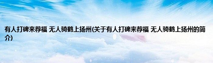 本文关于有人打碑来荐福,无人骑鹤上扬州的简介就讲解完毕,希望对大家有所帮助。